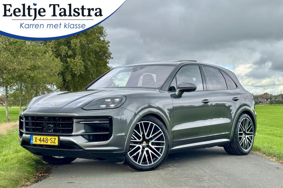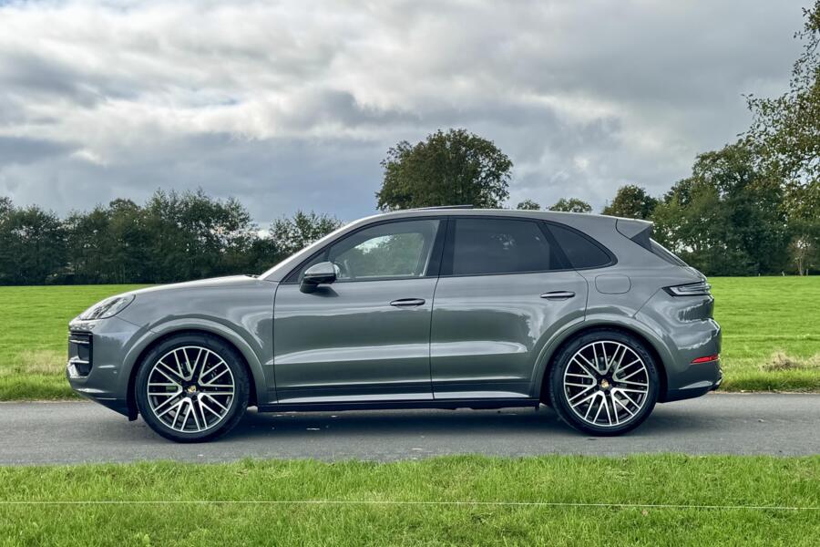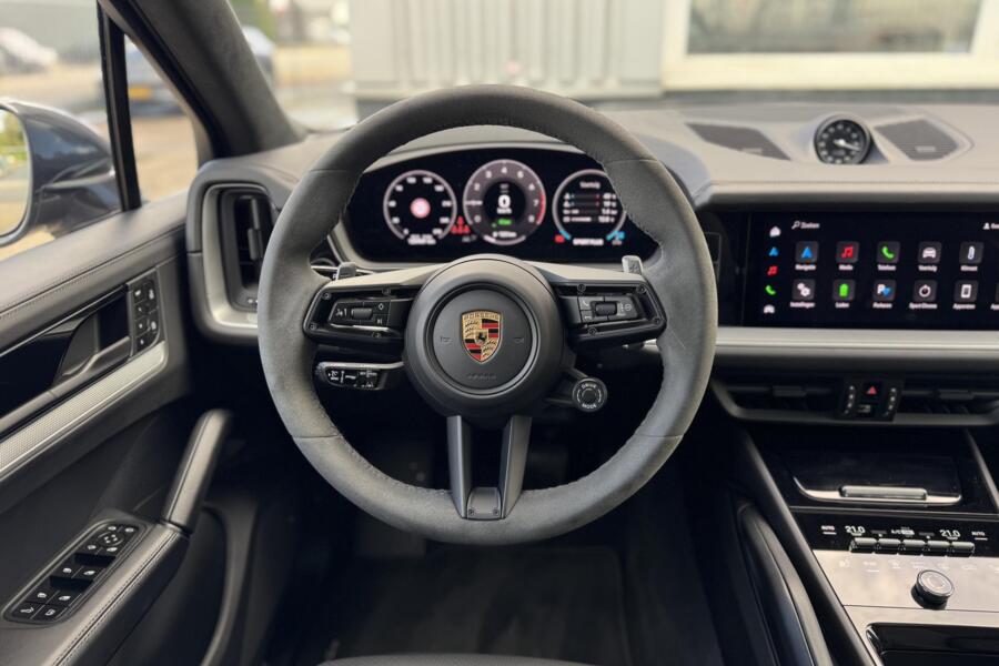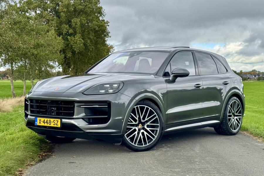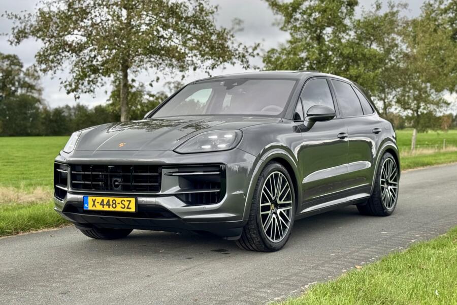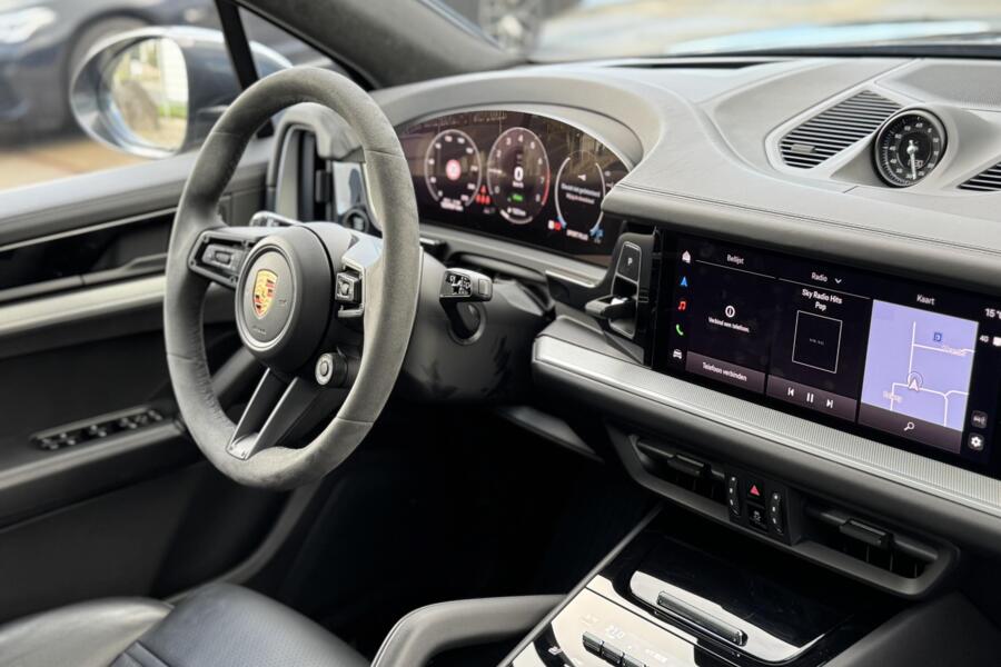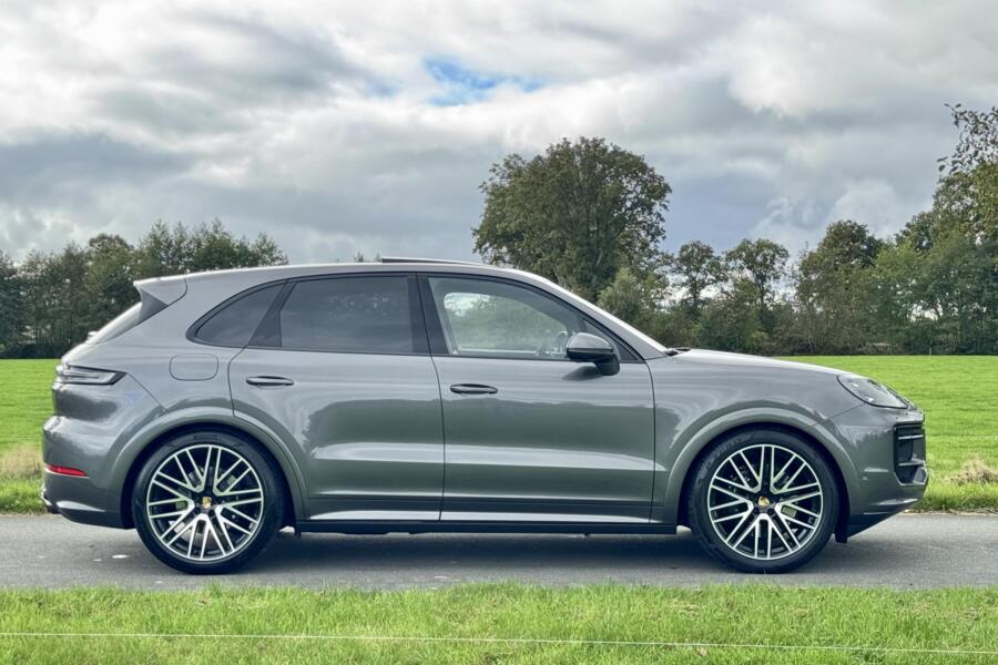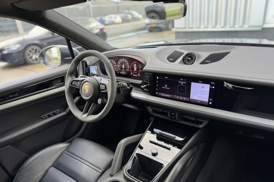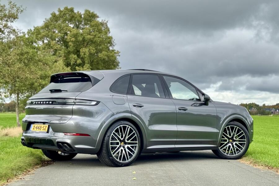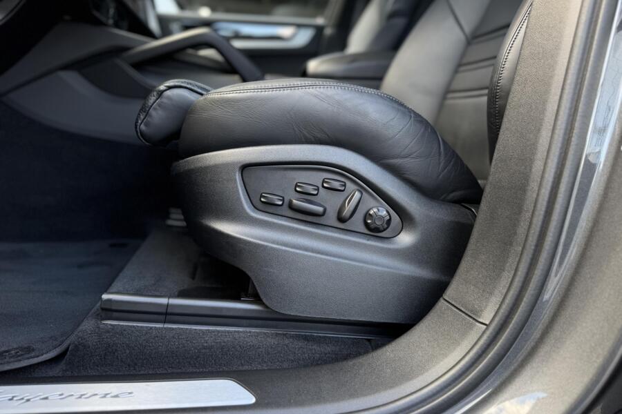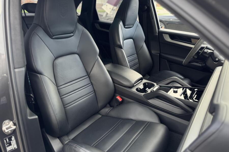 Porsche Cayenne – Kwartsietgrijs metallic met zwart volleder interieur. Zeer compleet uitgevoerde facelift-uitvoering met onder meer: